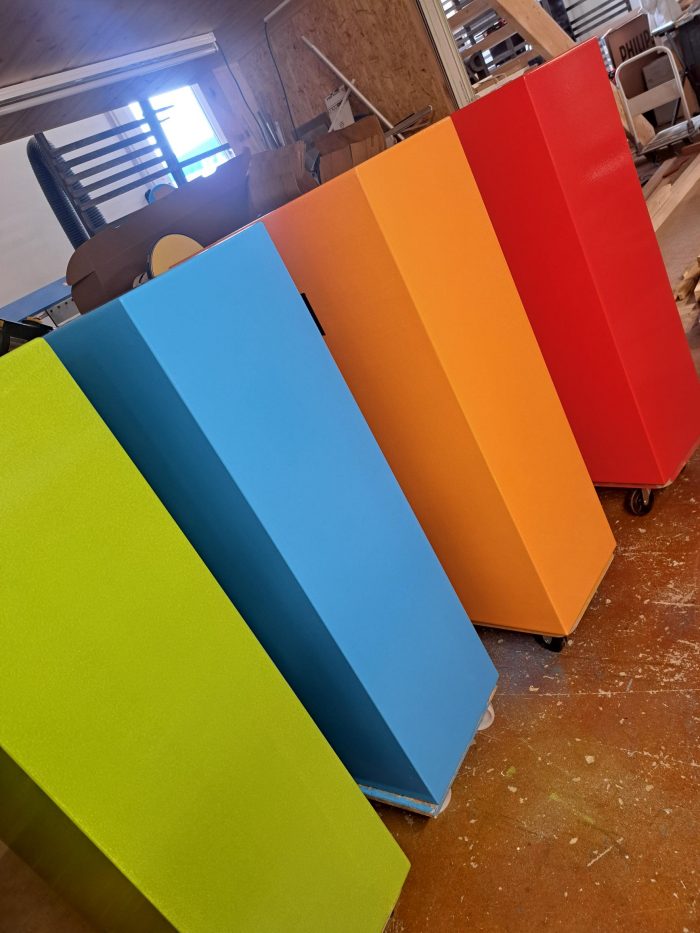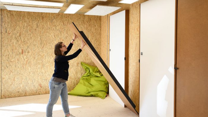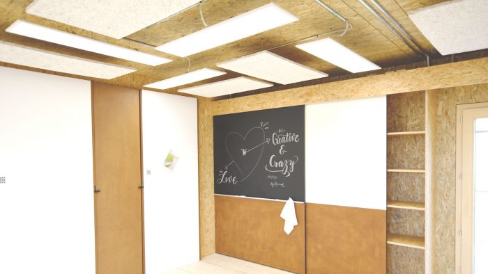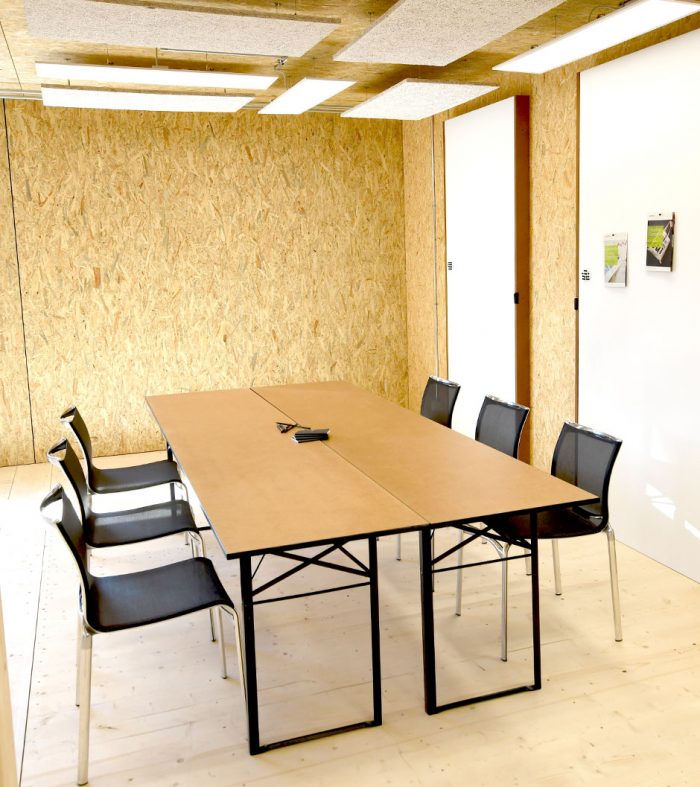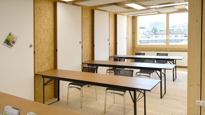 Lattich St. Gallen. Inmitten der Stadt St.Gallen, fünf Minuten vom Bahnhof entfernt, entstanden im Lattich 45 Holzmodule, ideal für Selbständige und kleine Unternehmen aus der Kreativwirtschaft. Ich durfte für die Schule für Gestaltung ein Doppelmodul gestalten, das als Schulzimmer, aber auch für andere Anlässe multifunktional genutzt werden kann.