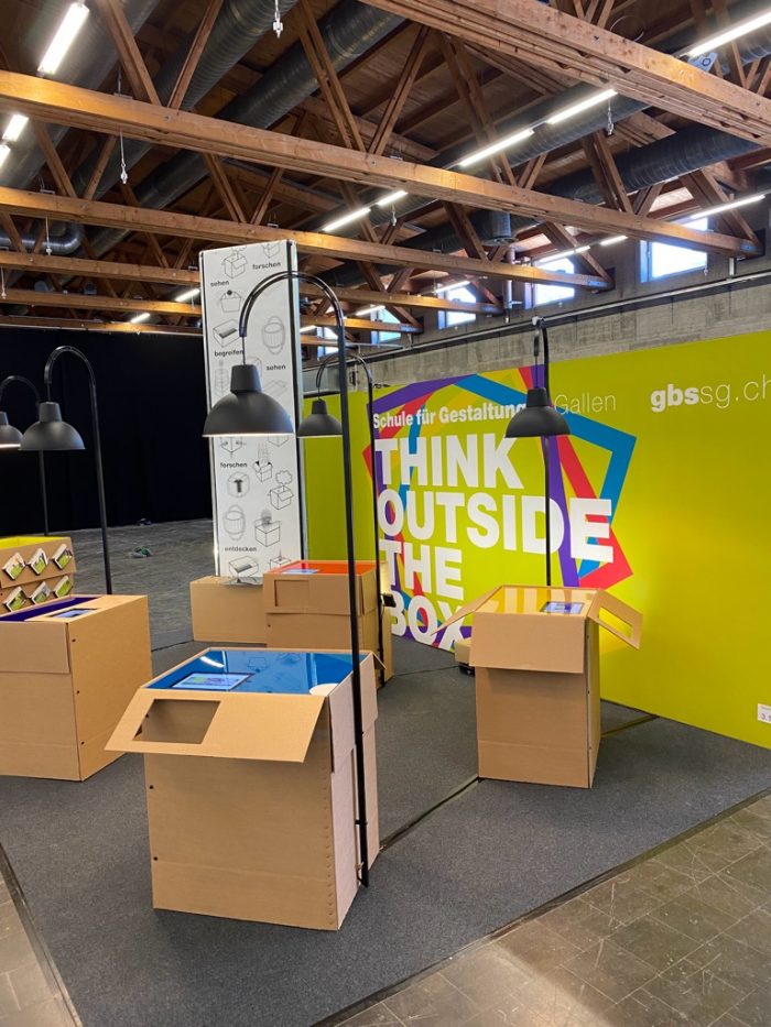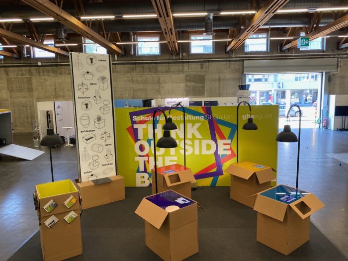 Auftritt OBA Messe. GBS St. Gallen 2018. Für die Schule für Gestaltung durfte ich den Messeauftritt der Schule an der Ostschweizer Bildung-Ausstellung OBA gestalten und realisieren. Der Stand soll auf den ersten Blick die Kreativität der Schule für Gestaltung darstellen.